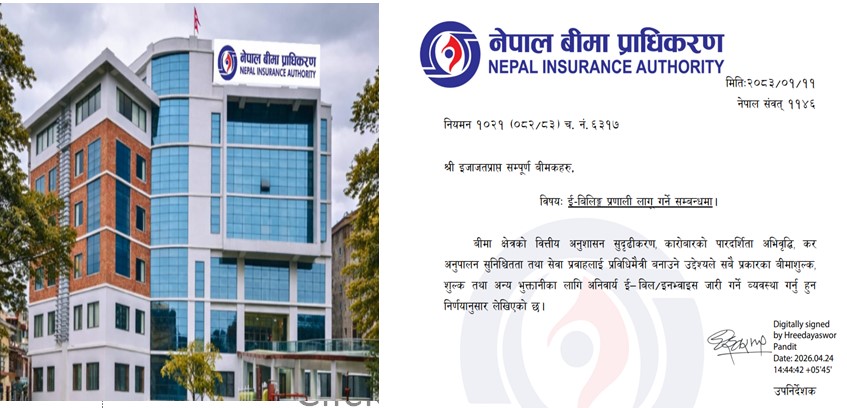 Kathmandu — The government has formed a recommendation committee to appoint a new chairperson of the Nepal Insurance Authority. As per a Cabinet decision on April 21, the committee is headed by Dr. Gunakar Bhatta, with Dr. Ghanshyam Upadhyay serving as a member and insurance expert Dr. Fattabahadur KC as an expert member. Currently, a Joint Secretary at the Ministry of Finance is overseeing...