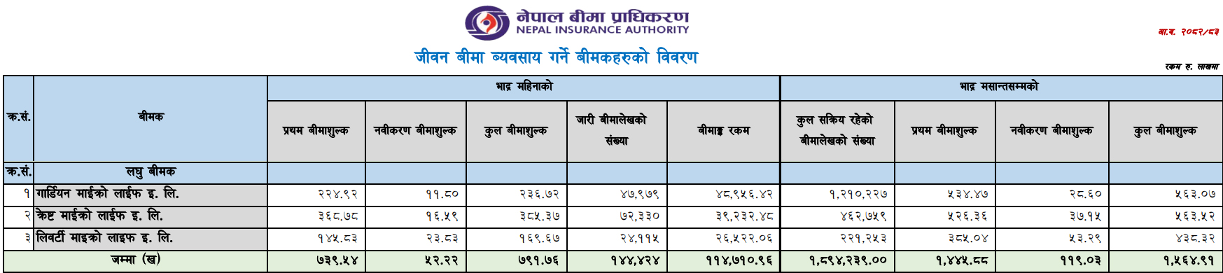 Leading the sector, Crest Micro Life recorded the highest premium collection, earning Rs 56.3 million by the end of Bhadra.