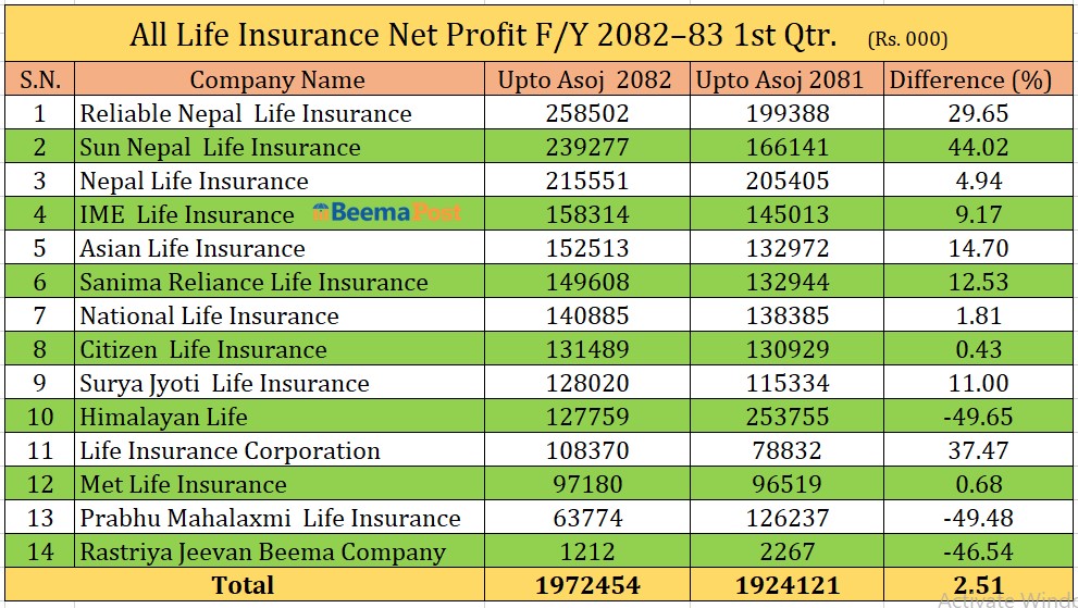 Life Insurance Companies in Nepal Reports 2.51% Net Profit Growth in Q1