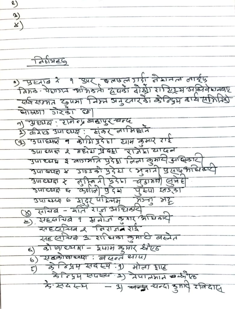 Shankar Lamichhane was elected as Senior Vice President. The Vice Presidents include Yam Kumar Rai, Rajesh Yadav, Lila Kumari Adhikari, Bhuwani Prasad Adhikari, Chudamani Subedi, Pushpa Khadka, and Manju Bhatt.