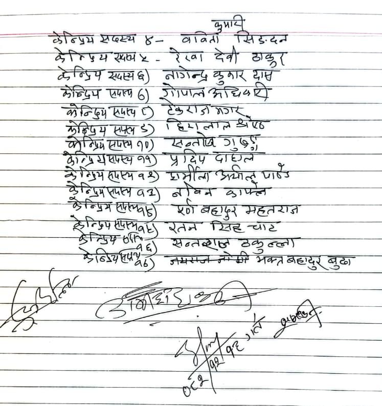 Shyam Kumar Shrestha has been appointed Treasurer, with Basanta Thapa as Deputy Treasurer. The newly elected central members include Bhola Shah, Nepalman Shrestha, Chanda Kumari Ravidas, Babita Kumari Singdan, Rekha Devi Thakur, Nagendra Kumar Das, Gopal Adhikari, Tekraj Magar, Hiralal Shrestha, Santosh Gurung, Pradeep Dahagale, Sharmila Aryal Pandey, Nabin Kafle, Purna Bahadur Mahtara, Ratan Singh Chat, Santaraj Thakulla, and Bhakta Bahadur Budha; all selected unanimously.