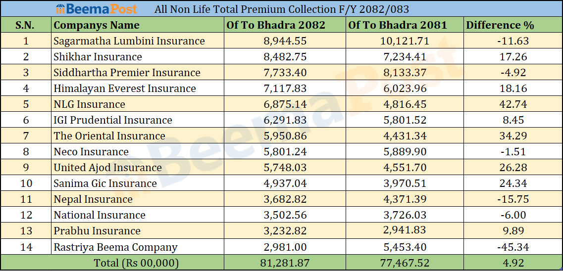 Kathmandu — Non-life insurance companies in Nepal have earned more than Rs 8 billion in total insurance premiums during the first two months of the current fiscal year. According to data released by the Nepal Insurance Authority, 14 non-life...
